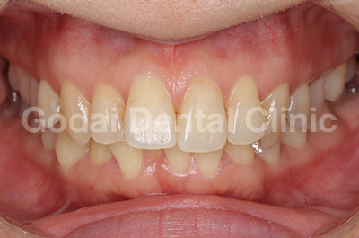 患者様は30代女性、前歯の歯並びを治したいという主訴で来院されました。小さい頃に矯正治療の経験があるのですが、保定装置をほとんど使わなかったためにだんだん歯が動いてきてしまい前歯…