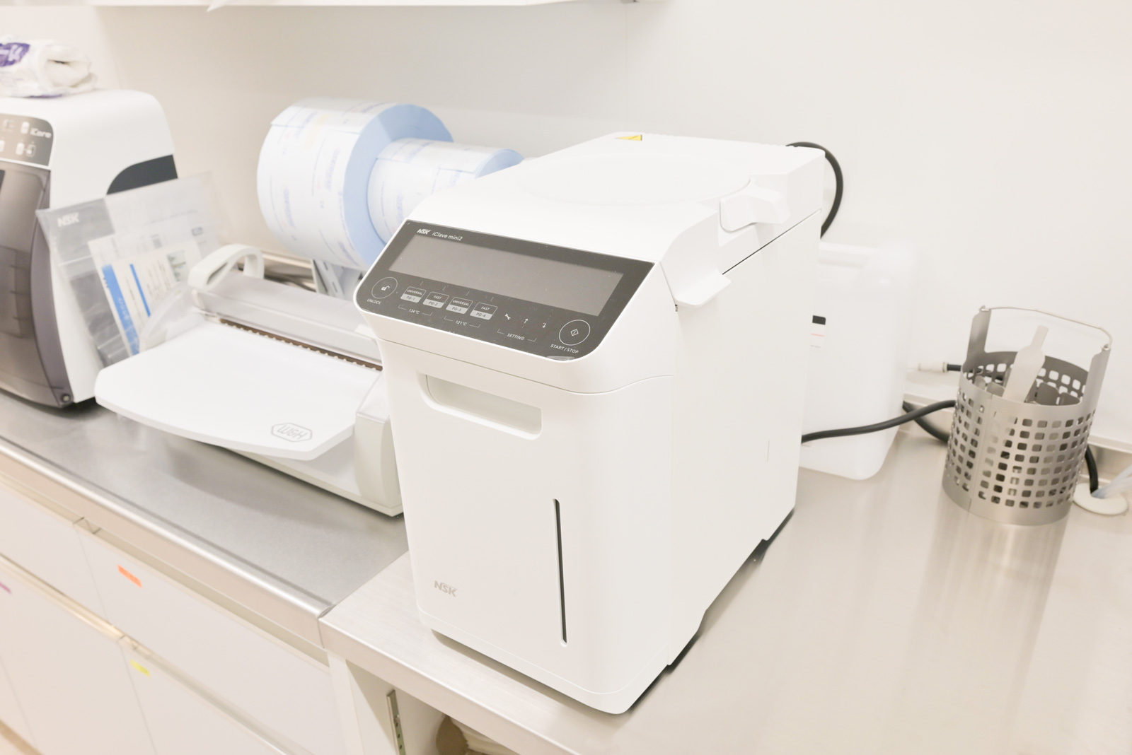 ヨーロッパ基準EN13060のクラスB規格をクリアする「オートクレーブ」を導入しています。減菌前と滅菌後の乾燥時にチャンバー内を真空状態とすることにより、通常のオートクレーブでは困難な中空のものや多孔性のものを安全、確実に減菌します。