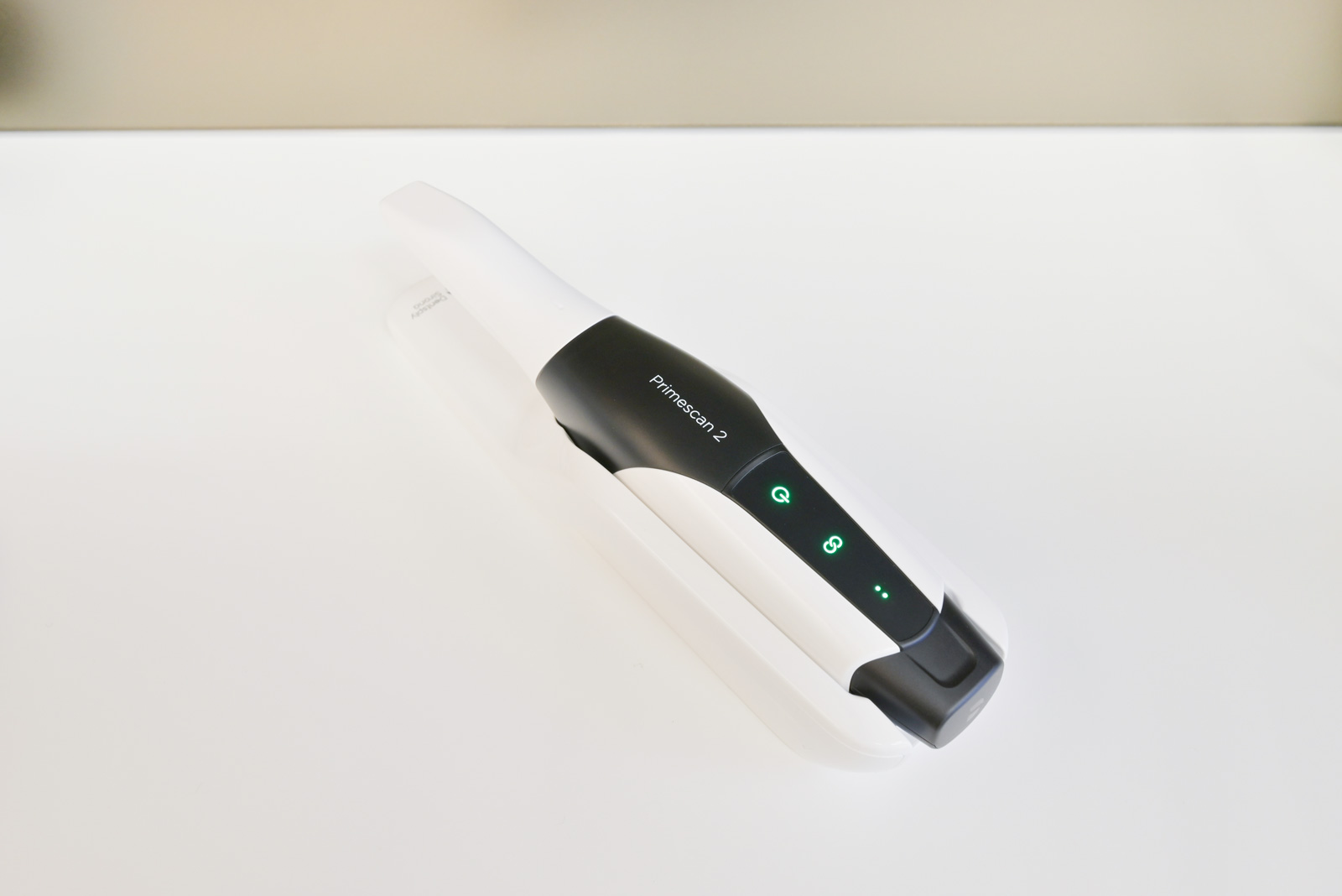 最先端の光学口腔スキャナーです。従来は口の中にシリコン材などを入れて歯型を採っていましたが、もう必要ありません。こちらの機器で口腔内をスキャンするだけで、正確かつスピーディーに歯型を採取できます。主に矯正用マウスピースを作製するときに使用します。