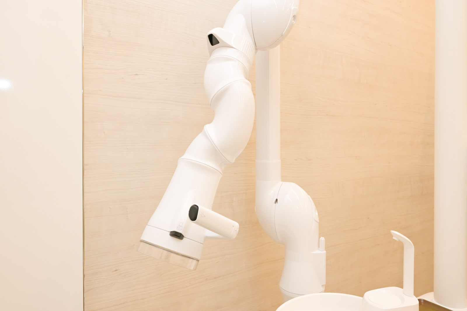 口腔外バキュームは、空気中の細かい粉塵を強力な吸引力で吸い込む機器です。歯科医院では、歯を削ったり、入れ歯や銀歯を調整するとき、歯の削りかす、金属片、血液、細菌など目に見えない細かい粉塵が発生します。当院では、こうした粉塵が広がってしまわないように、診療室に口腔外バキュームを設置しています。快適でクリーンな診療室をつくるためには欠かせません。