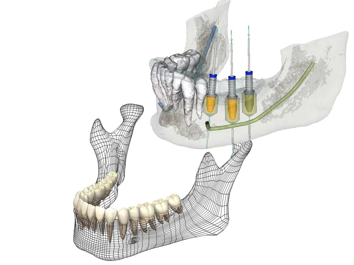 CTスキャンデータを「シミュレーションソフト」に取り込み徹底的に分析します。この分析により、インプラントの大きさ、最適な挿入位置、そして最適な挿入角度を特定することができます。