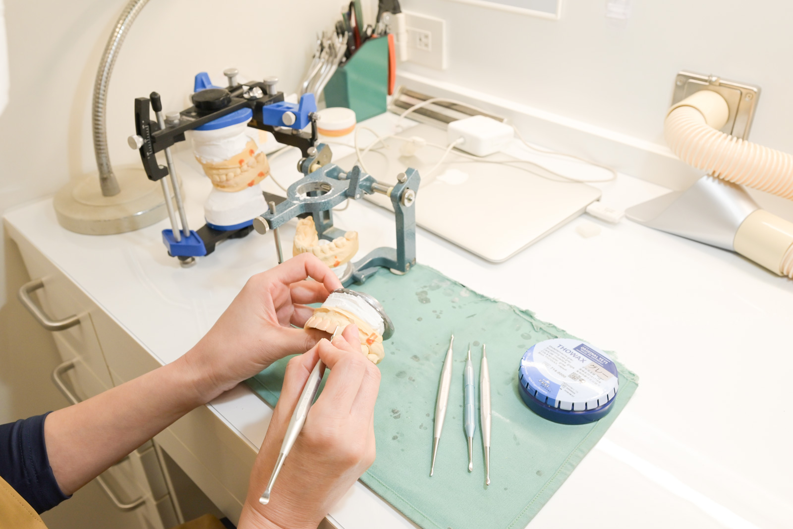 外部の技工所に依頼する場合、発送や納期の調整が必要となり、製作・修正に時間がかかることがあります。院内に技工士がいる当院では、すぐに製作・修正が可能なため、入れ歯をより短期間で完成させることができます。