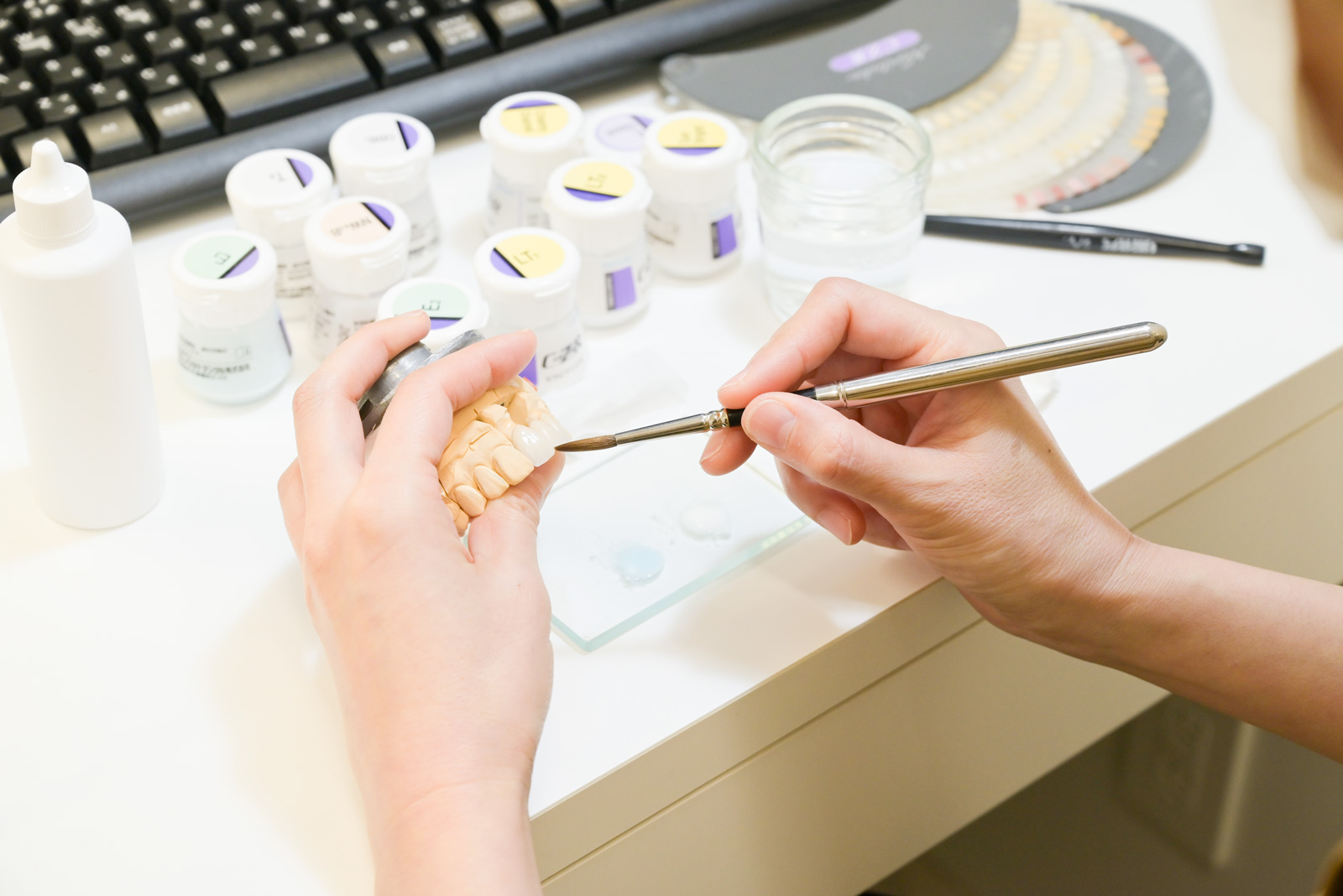 「もう少し白くしたい」「歯の形を変えたい」などの要望も、歯科技工士が直接お話を伺い、その場で微調整が可能です。