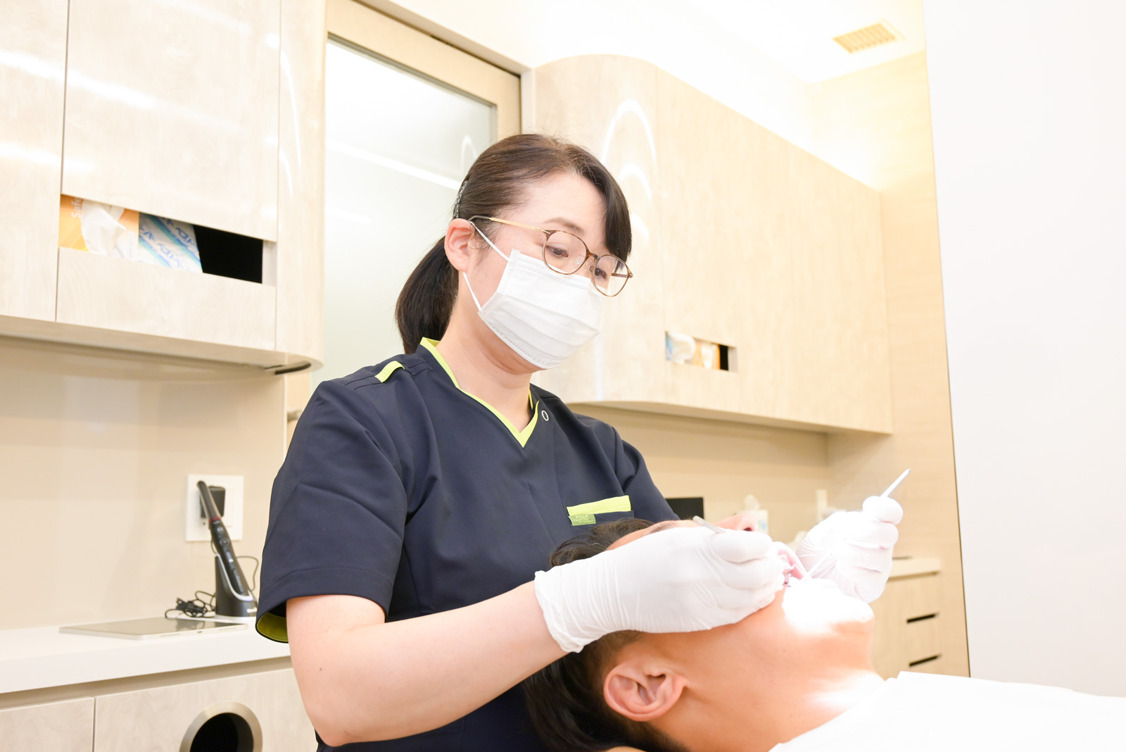 当院では、毎回同じ歯科衛生士が担当し、前回との比較や改善状況を確認しながら、最適なメインテナンスやブラッシング指導を行っています。